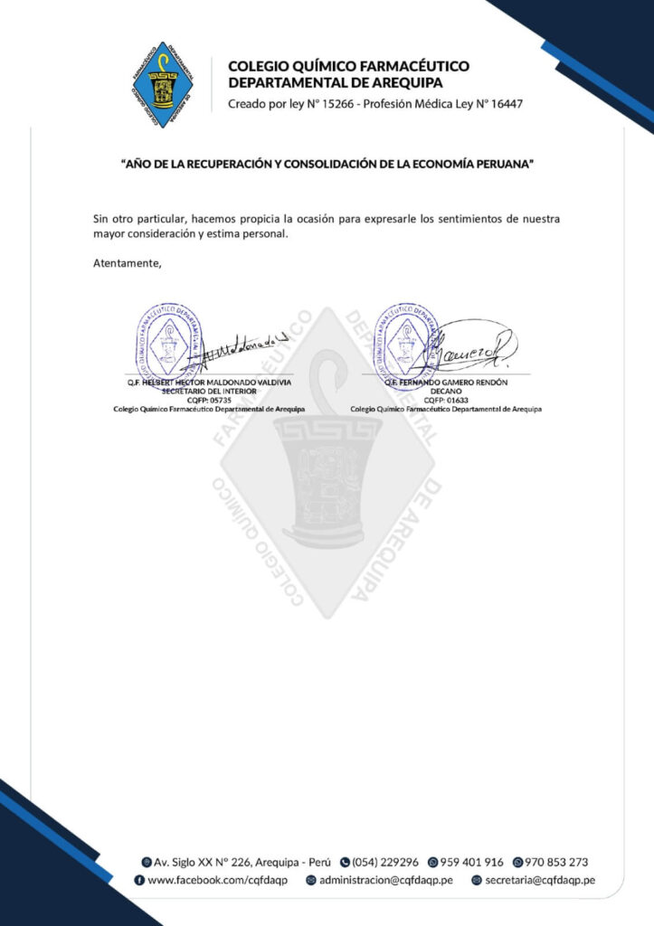 El Consejo Directivo del Colegio Químico Farmacéutico Departamental de Arequipa informó el inicio de mesas de trabajo interdepartamentales en coordinación con los Colegios Departamentales de Cusco, Puno, Moquegua y Tacna, con el objetivo de construir una propuesta conjunta de modificación del marco normativo vigente.